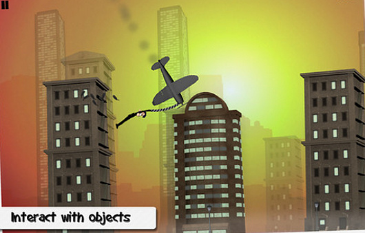 Hra mě okamžitě chytla svou jednoduchostí a hravostí. Na papíře to vypadá na snadnou záležitost, ale hra je ve skutečnosti poměrně těžká. Vysoké mrakodrapy střídají nižší budovy, tudíž vše musíte načasovat tak, aby jste proletěli sekce nižších budov bezpečně. Jedním máčknutím na konkrétní místo na budovu vystřelíte lano a druhým máčknutím se lana pustíte. Pod správným úhlem musíte tedy panáka vystřelovat dále, čím větší plynulosti a rychlosti dosáhnete, tím lépe. Pomocníkem vám jsou i objekty poletující náhodně ve vzduchu, můžete se zachytit např. za letadlo či balón a s nimi překonat další vzdálenost. Po čase se však létající objekty začnou řítit k zemi a vy tak musíte opět najít vhodný věžák.